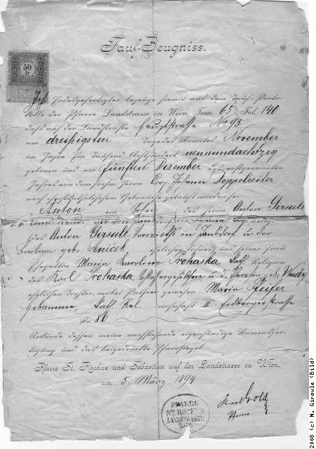 1889-11-30 * Anton Girsule 1889, Wien 3, Landstraßer Hauptstraße 95