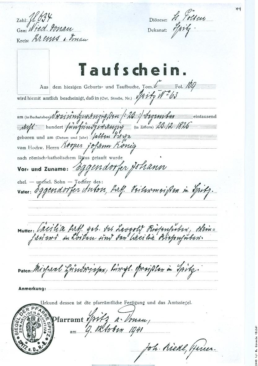 1825-12-23 * Johann Eggendorfer 1825, Spitz 63