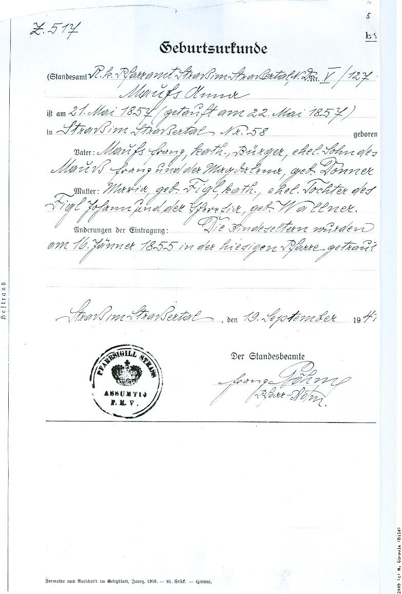 1857-05-21 * Anna Hessler 1857, Straß 58