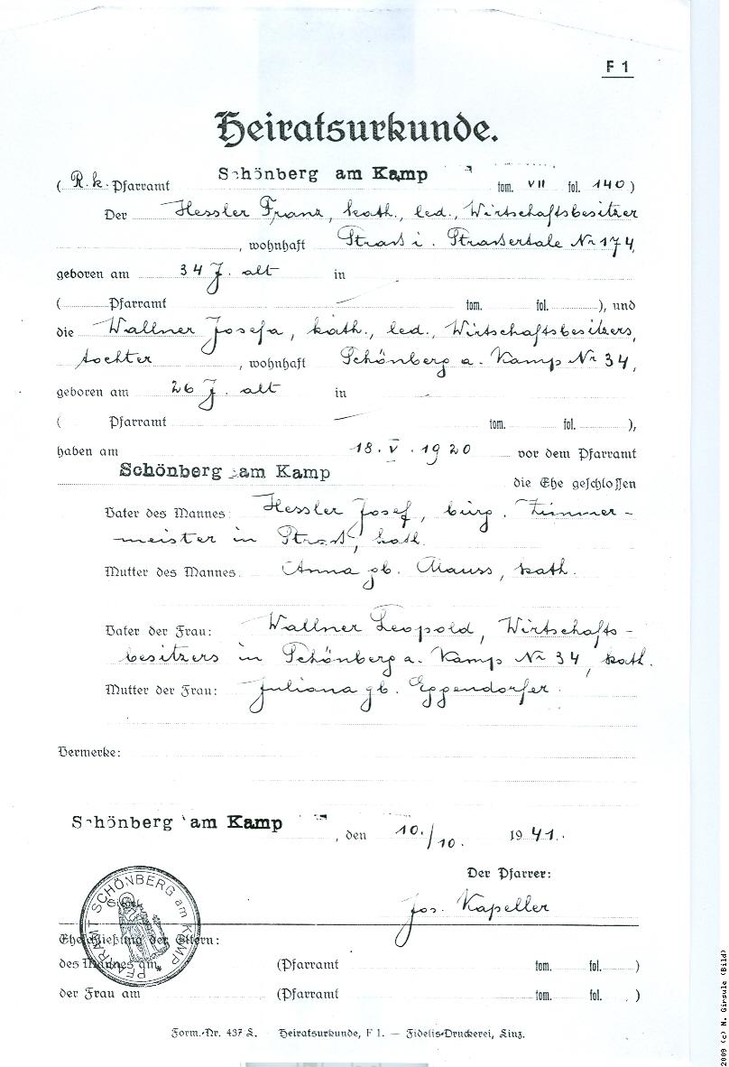 Schönberg am Kamp, den 10. 10. 1941